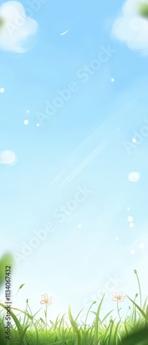 Serene sky and green grass landscape with soft clouds nature scene peaceful viewpoint tranquility concept