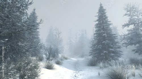 Serene Snowy Pine Forest Under a Tranquil Pale Gray Winter Sky, Reflections in Nature