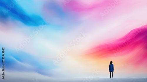 Serene Solitude in Colorful Abstract Sky with Person Standing Alone