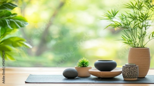 Serene Space: Zen Garden Elements - Tranquility, nature, balance, peace, mindfulness. A calm scene perfect for wellness and meditation.