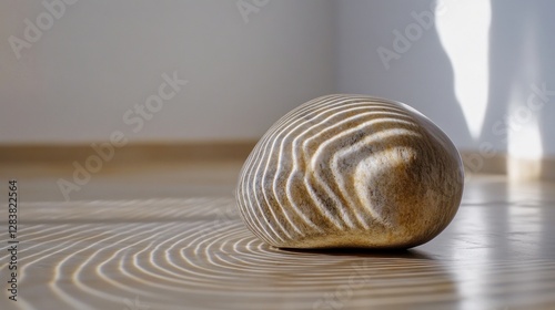 stone, light, shadow, polished, surface, texture, line, pattern, abstract, minimalism, interior, design, art, object, smooth, round, shape, natural, wood, floor, sunlight, beam, wave, curve, still, life, photo, image, visual, composition, artistic, aesthetic, zen, peaceful, tranquil, calm, harmony, balance, simple, elegant