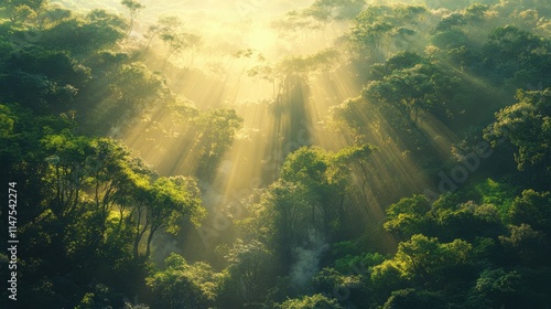 Serene Sunlight Filtering Through Dense Tropical Jungle Canopy