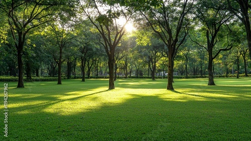 Serene Sunrise in a Lush Green Park