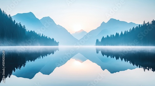 sunrise, mountain, lake, mist, fog, blue, sky, water, calm, tranquil, peaceful, serene, nature, landscape, scenic, beautiful, travel, adventure, wilderness, horizon, dawn, morning, light, soft, dreamy, aethereal, vibrant, inspirational, majestic, picturesque, idylli, breathtaking, stunning, awesome, magnificent, gorgeous, lovely, happy, joy, serenity, peace, joyful, relaxed, harmony, balance