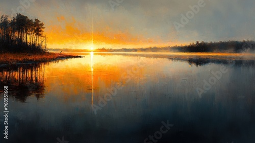 Serene Sunrise over Tranquil Lake - A Renewal of Light and Peace