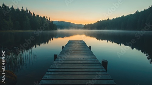 lake, sunrise, nature, dock, water, landscape, calm, fog, peaceful, morning, scenic, wilderness