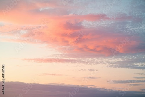 Serene Sunrise Sky Soft Clouds Tinged with Radiant Hues of Pink, Orange, and Blue