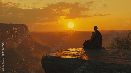 meditation, sunset, monastic, silhouette, cliff, serene, spiritual, landscape, peaceful, nature, calm, sun, harmony, zen, relaxation, calmness, mindfulness, scenic, orange, sky, cloud, evening, bliss, serenity, view, meditative, mountain, earth, balance, solitude, sharpened, natural beauty, spirituality, dusk, calmness, inner peace, appreciation, wilderness, breathtaking, nirvana, travel