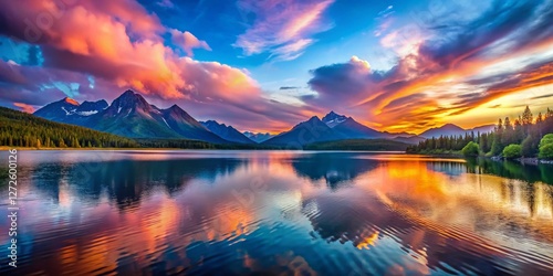 sunset, mountain, cloud, water, landscape, nature, serenity, peace, calm, sky, mountain peak, afterglow, horizon, golden hour, tranquil, beautiful, picturesque, scenic, majestic, serene, still water, evening, twilight, photo, image, photo, royalty free, hi-res, digital image, beautiful sunset, natural beauty