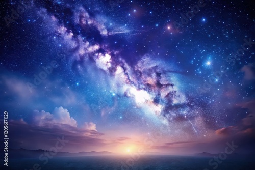 night sky, star, milky way, galaxy, cosmos, universe, space, sunset, ocean, sea, horizon, cloud, landscape, nature, astronomic, celestial, twilight, dusk, serenity, calm, peaceful, dreamy, magical, aethereal