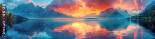 Serene Sunset Over Mountain Lake