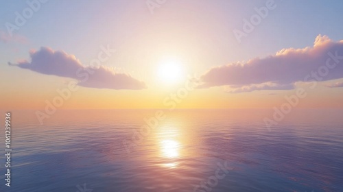Serene Sunset over Tranquil Ocean Horizon