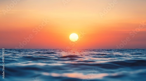 Serene sunset over tranquil ocean waves, warm orange hues.