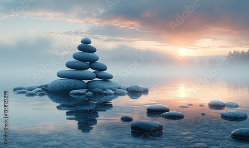sunset, sunrise, calm, peaceful, serene, tranquil, balance, stone, rock, zen, meditation, yoga, mindfulness, nature, landscape, water, sky, cloud, mist, fog, serenity, quiet, stillness, harmony, equilibrium, stability, composure, relaxation, peace, solitude, spiritual, well-being, wellness, health, beautiful, scenic, picturesque, imagery, image, photo, art, artwork, colours, vibrant, dreamy