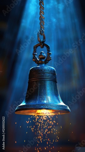 bell, glowing, sacred, serene, temple, radiating, light, mystic, calmness, culture, spirituality, peace, reverberation, sound, ancient, beauty, calm, illumination, meditative, stillness, aura, atmosphere, ritual, heritage, decoration, artisan, design, metal, craftsmanship, charme, ambience, warmth, history, echo, spiritual, symbol, reverence, setting, ceremony, divine, soft, beam of light, sharpened, detail, artistic, natural, shine