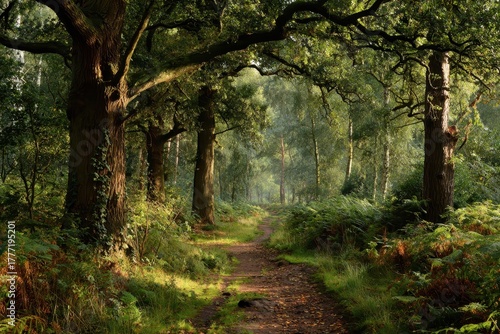 Serene Trail Through Sherwood Forest: A Beautiful Pathway Amidst Summer and Autumn Foliage