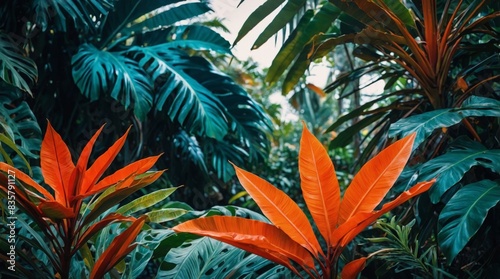 Serene Tropical Jungle Paradise with Lush Foliage and Vibrant Colors