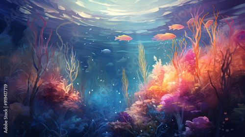 Serene underwater scene with light rays. Tranquil and ethereal atmosphere. Calm underwater background.