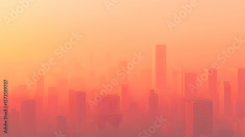 city landscape, skyline, sunset, haze, skyscraper, urban, architecture, mist, dawn, aerial, view, background, building, metropolis, tower, orange, red, silhouette, dreamlike, obscured, dreamy, aethereal, tranquil, peaceful, mysterious, foggy, atmosphere, serenity, construction, real, estate, investment, downtown, center, facades, exterior, nobody, sunlight, cloudy, gradient, vibrant