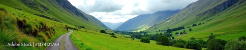 Serene valley and lush greenery in Fairy Glen, Isle of Skye, Scotland, Inner Hebrides, nature