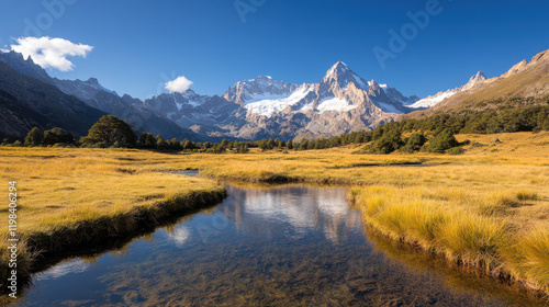 vale, stream, mountain, landscape, nature, grass, blue skies, scenic, tranquil, wilderness, hiking, travel, adventure, summer, sunlight, greenery, picturesque, alpine, clearwater, peaceful, environment, natural beauty, remote
