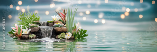background, cover, waterfall, tropical, flower, plant, oasis, serenity, peace, calmness, water feature, relaxation, spa, zen, calm, nature, lush, greenery, foliage, stillness, calm water, decorative, home decor, garden, landscape, beauty, natural, escape
