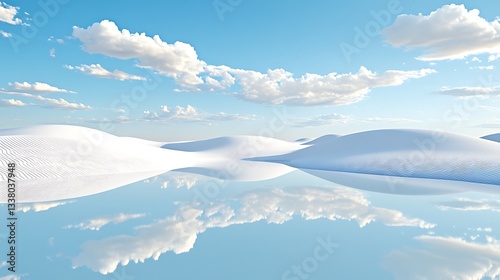 desert, dune, sand, white, sky, cloud, water, peaceful, serene, landscape, nature, calm, tranquil, still, oasis, blue, light, white sand, desert landscape, tranquil scene, natural beauty, digital artwork