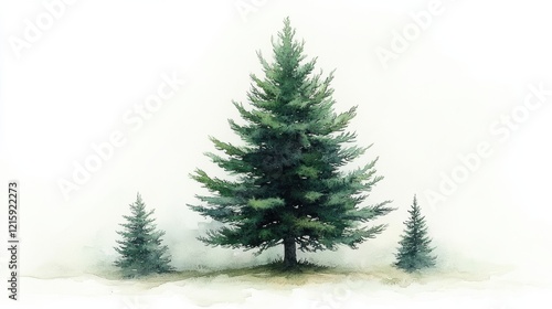 Serene Winter Landscape with Evergreen Trees and Soft Misty Background
