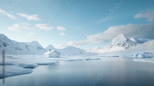 winter, landscape, house, mountain, snow, ice, water, tranquil, nature, cold, cloudy, remote, scenic, solitude, stillness, horizon, blue, environment, daylight, crystal, beauty, peaceful, continent, isolation, vacation, travel, wilderness, chilly, atmosphere, adventure, amazing, winterly, view, frosty, white, winter scene, countryside, calm, picturesque, seasonal, frost, exploration