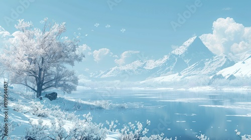 winter, snow, landscape, mountain, lake, tree, glacé, serene, cold, sky, blue, white, nature, scenic, peaceful, calm, beautiful, tranquil, frost, ice, majestic, panoramic, view, background, scene, season, environment, horizon, wilderness, picturesque, arctic, alpine, chilly, frosty, snowy, crystal, clear, serenity, calmness, solitude, wintery