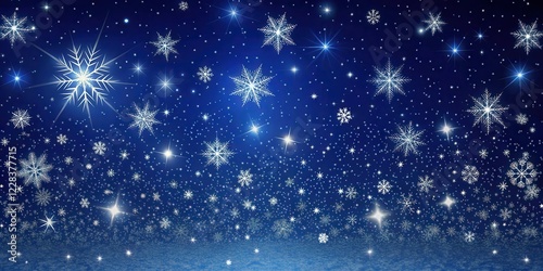 Serene winter night with a beautiful wallpaper featuring stars and snow in a dark blue sky with gentle snowfall on a white background , wallpaper, serene