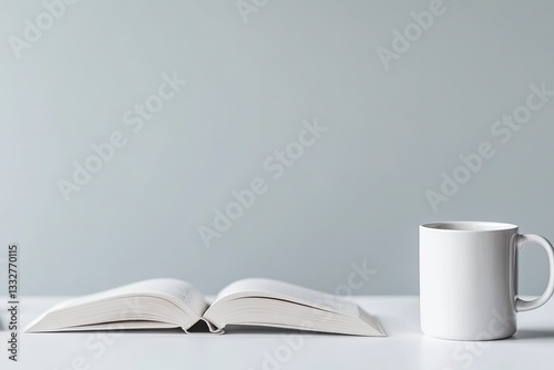 serene, workspace, open, book, hot drink, mug, notebook, mental, growth, capture, essence, quiet, inspiring, environment, thought, ample, copy space, around, element, suggest, endless, possibility, sharpened, learning, development, professional, design, abstract, visual, concept, empty space, style, composition, simplicity, high-quality, colours