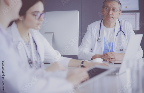 medicals, woman, computer, hand, girl, man, cyberspace, office, technology, doctor, health care, desk, female, caucasian, clinic, stethoscope, hospital, professional, male, practitioner, specialist, team, nurse, laptop, sitting, using, notebook, discussing, discussion, examining, indoor, looking, profession, wireless, young, meeting, staff, speaking, pointing, serious, chatting, colleague, confident, labcoat, mature adult, scrub
