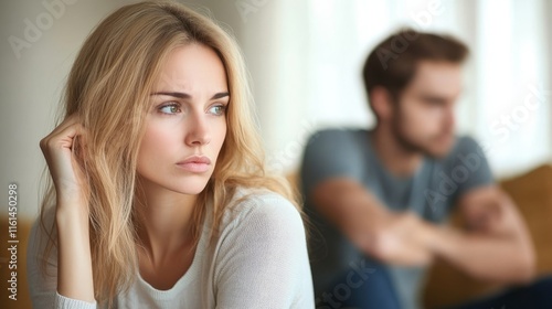Serious sad woman thinking over a problem, man aside, meeting therapist, poor chance of getting pregnant after 40, unmet expectations, unable to handle family finances, interested in different things