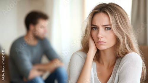 Serious sad woman thinking over a problem, man aside, meeting therapist, poor chance of getting pregnant after 40, unmet expectations, unable to handle family finances, interested in different things