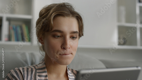 tablet, serious, browsing, online, businesswoman, lip, working, home, manager, biting, woman, closeup, computer, girl, remote, pajama, digital, beautiful, watch, cyberspace, blond, communication, closeup, room, contraption, blog, freelancer, check, men at work, lady, sofa, focused, living, attractive, holding, office, caucasian, pad, morning, workplace, confident, slow motion, wireless technology, leisure time