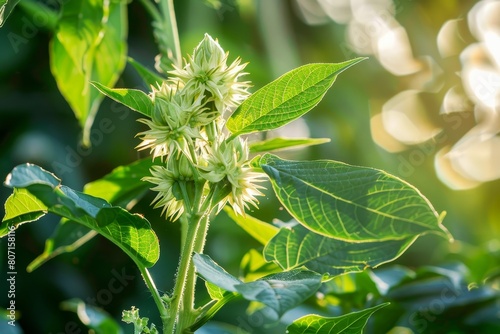 Sesame flower on plant in field tall herbaceous plant grown for oil rich seeds