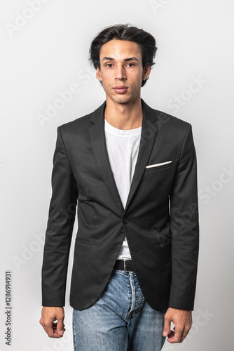 sesión fotográfica de modelo masculino en estudio fondo blanco