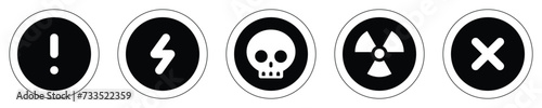 set attention outline circle sign warning electric alert radioactive crossing stop traffic symbol caution hazard danger badge road mark vector flat design for web mobile isolated white Background