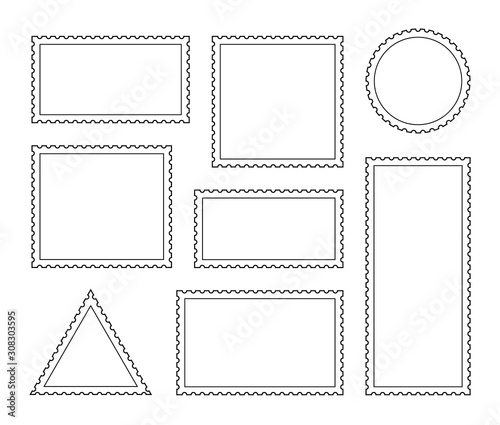 Set blank postage stamp. Vintage frames. Toothed border mailing postal sticker template. Vector graphic design