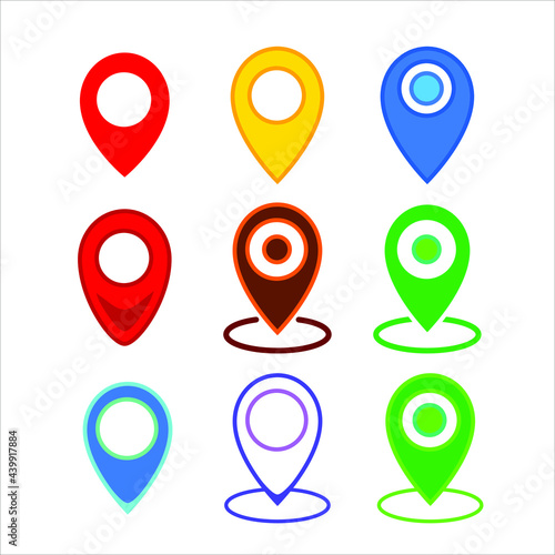Set colored icons of simple forms of point of location. Map pin icon vector, filled flat sign isolated on white. Location point symbol, logo illustration.