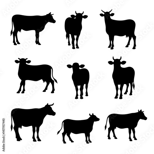 Set Cow silhouettes, Set of cow silhouettes in various poses. isolated vector on white background.