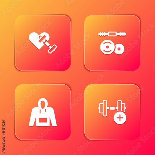 Set Dumbbell with heart, Barbell, Hoodie and icon. Vector