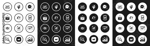 Set Financial growth, Pie chart infographic, Board with, Stocks market graphs, Mobile stock trading, Sales funnel, Graph and Time management icon. Vector