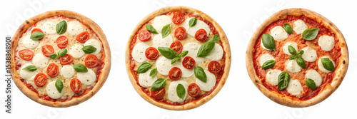 Set For Three margherita pizzas with tomatoes mozzarella and basil isolated on transparent background