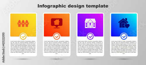 Set Garden fence wooden, Location with house, House and heart shape. Business infographic template. Vector