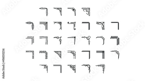 Set Hand Draw Of Corners Different Shapes Flower Decoration Vector Design Doodle Sketch Style For Wedding And Banner
