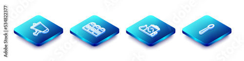 megaphone, mobile, phone, widener, vector, illustration, background, icon, symbol, signs, isolated, isometric, three-dimensional, set, square, blue, white, line, linear, contour, outline, art, speaker, can, bin, garbage, basket, sorted, reusing, rubbish, waste, design, junk, trash, recycling, recycled, container, environment, clean, ecology, pollution, reuse, plastic, environmental, fork, knife, disposable