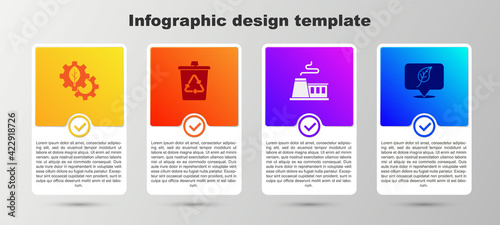 Set Leaf plant in gear machine, Recycle bin with recycle, Factory and Location leaf. Business infographic template. Vector