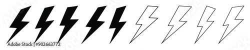 Set lightning bolt. Thunderbolt flat style. Electric vector icons. Lightning bolt. Electric lightning bolt symbols. Vector illustration